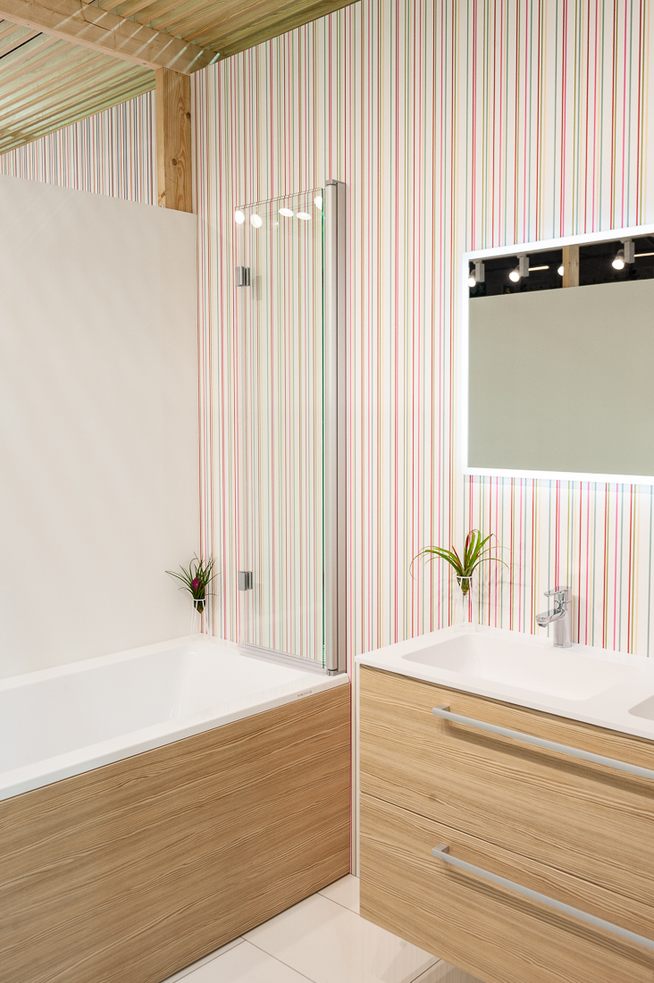 Пропонована для прямокутних ванн душова стінка виготовлена із загартованого скла та білого алюмінієвого профілю. Передня стінка на петлях, що дозволяє повернути її в потрібному напрямку по відношенню до краю ванни.