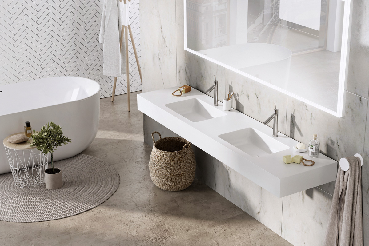 Стільниця з кам'яної маси із вбудованою раковиною.
