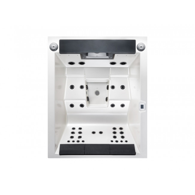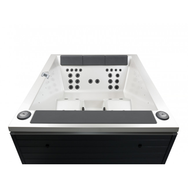 - Зовнішній мінібасейн із сидінням типу Lounge та двома додатковими сидіннями ідеально підходить для невеликої компанії. Басейн обладнаний зручними ергономічними сидіннями, які створюють можливість для насолоджуючого гідромасажу з різним зовнішнім і внутрішнім освітленням, і підходящою музикою.