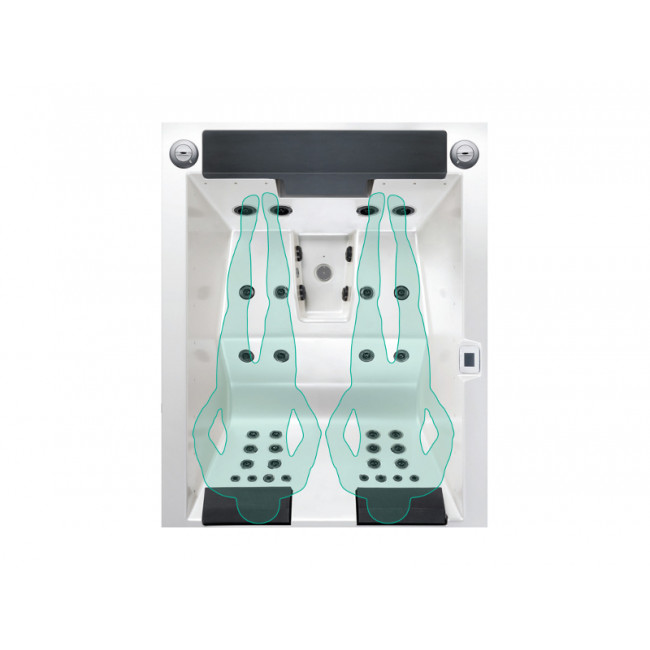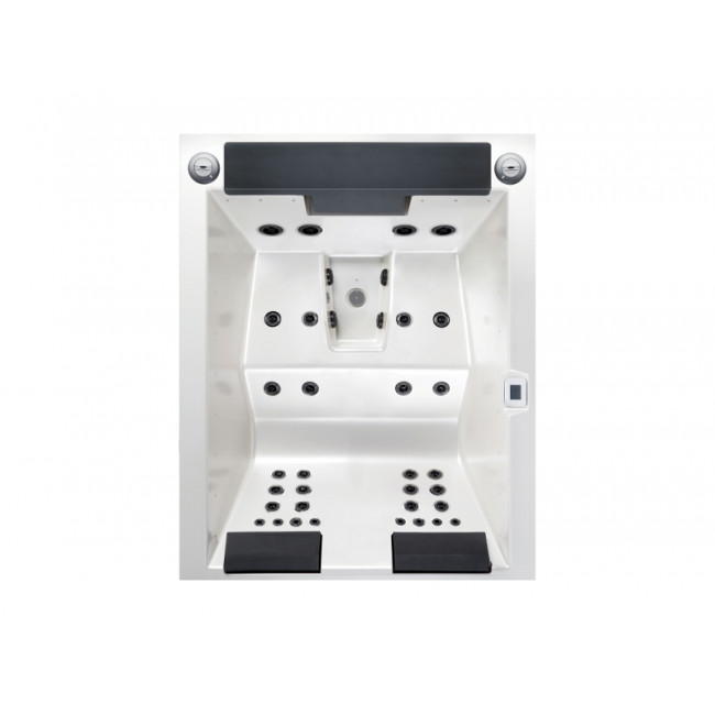 - Зовнішній мінібасейн із сидінням типу Lounge та двома додатковими сидіннями ідеально підходить для невеликої компанії. Басейн обладнаний зручними ергономічними сидіннями, які створюють можливість для насолоджуючого гідромасажу з різним зовнішнім і внутрішнім освітленням, і підходящою музикою.